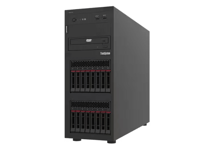 Intel® Xeon® E-2400 processor, up to 8 cores at 95W Up to 128GB TruDDR5 memory at 4400 ECC Flexible enterprise storage options with up to 16x 2.5″ hot-swap or 8x 3.5″ hot-swap and simple-swap drive bays Data center data protection provided by hardware RAID adapters Integrated systems management with Lenovo XClarity 4U chassis with optional rack-mount kit Front lockable bezel and chassis intrusion switch for security Supports optional NVIDIA Quadro T1000 or NVIDIA Quadro T400 GPU