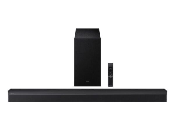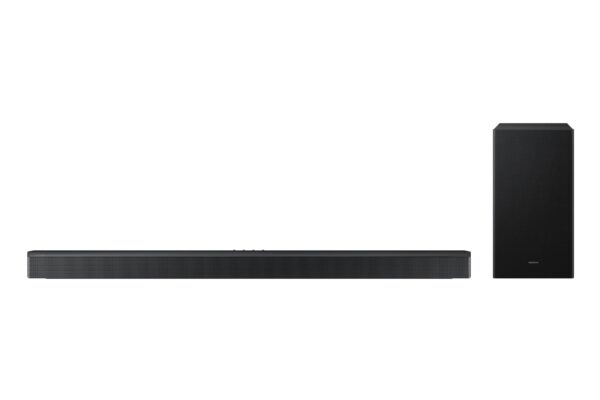 Put yourself in the heart of the action and get lost in immersive sound with enhanced, built-in side speakers. Provides a more immersive sound experience when synced with your Samsung TV. With compatible AI TVs, it enhances audio for even more clarity. Get drawn into the action with thrilling immersive sound that virtually surrounds you. Intelligently adjusts sound and dialogue based on what you’re watching.