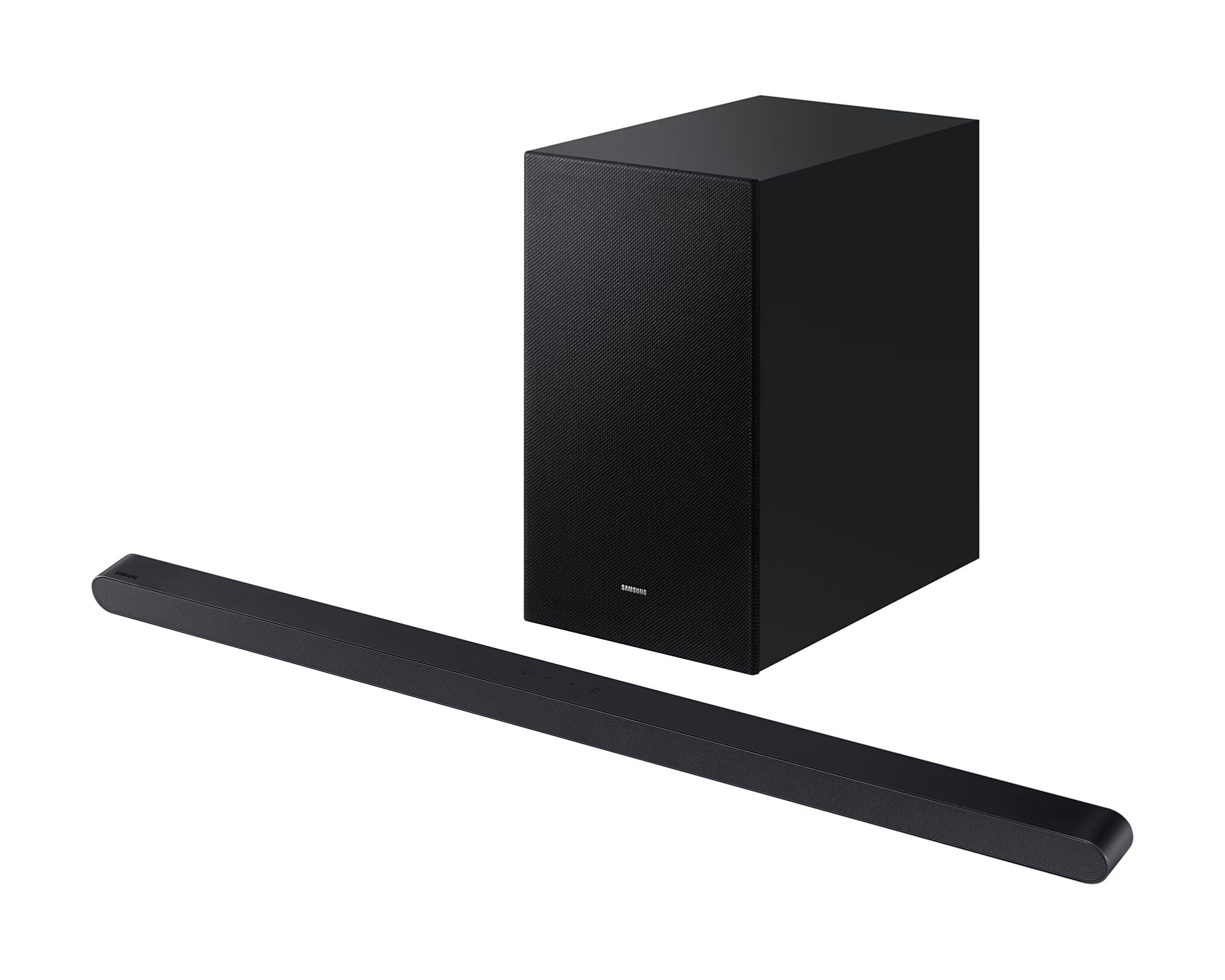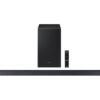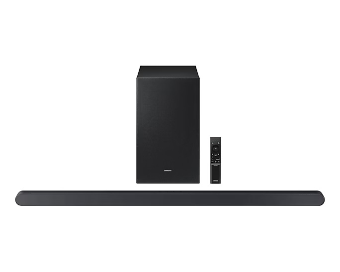 Uncompromised, exceptional sound in any setup—whether placed flat on the wall or on a table. Let the sound cascade over you with 3 front channels, 1 subwoofer and 2 up-firing channels, and enjoy a theater-like experience. Experience the ultimate 3D sound with Dolby Atmos™ — with or without a cable. Provides a more immersive sound experience when synced with your Samsung TV. With compatible AI TVs, it enhances audio for even more clarity.